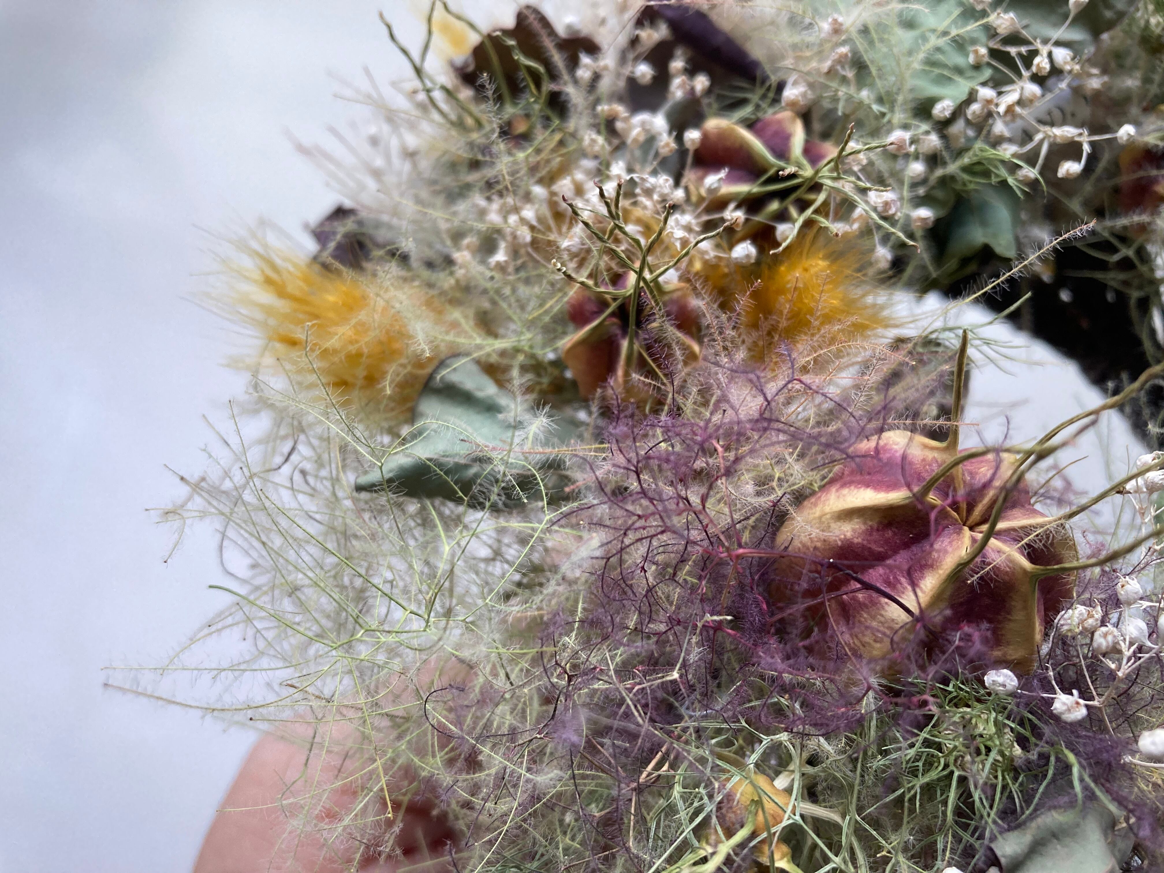 ★使用花材 / スモークツリー、ニゲラ、、テールリード、ソフトミニカスミソウ(プリザーブドフラワー)