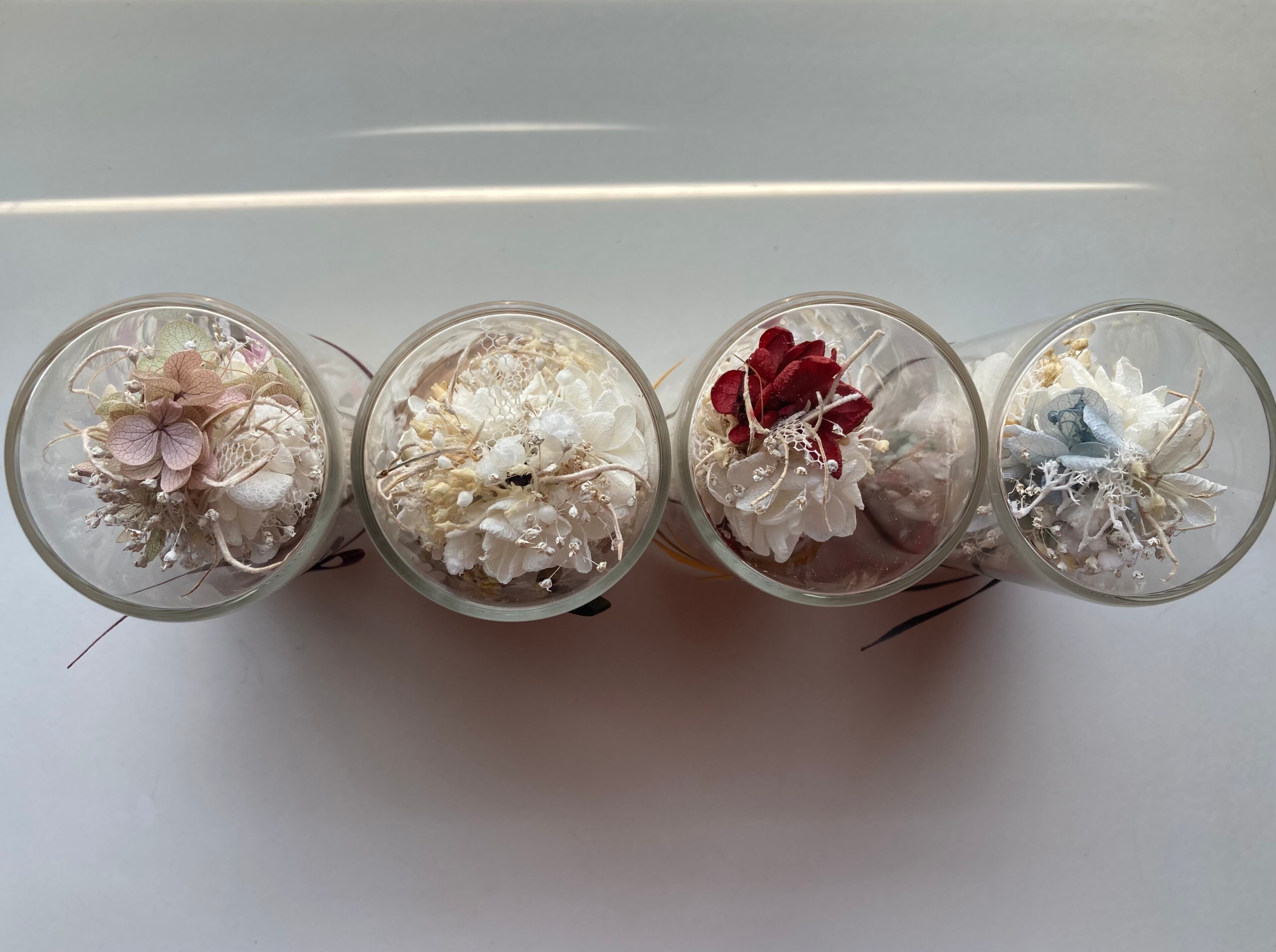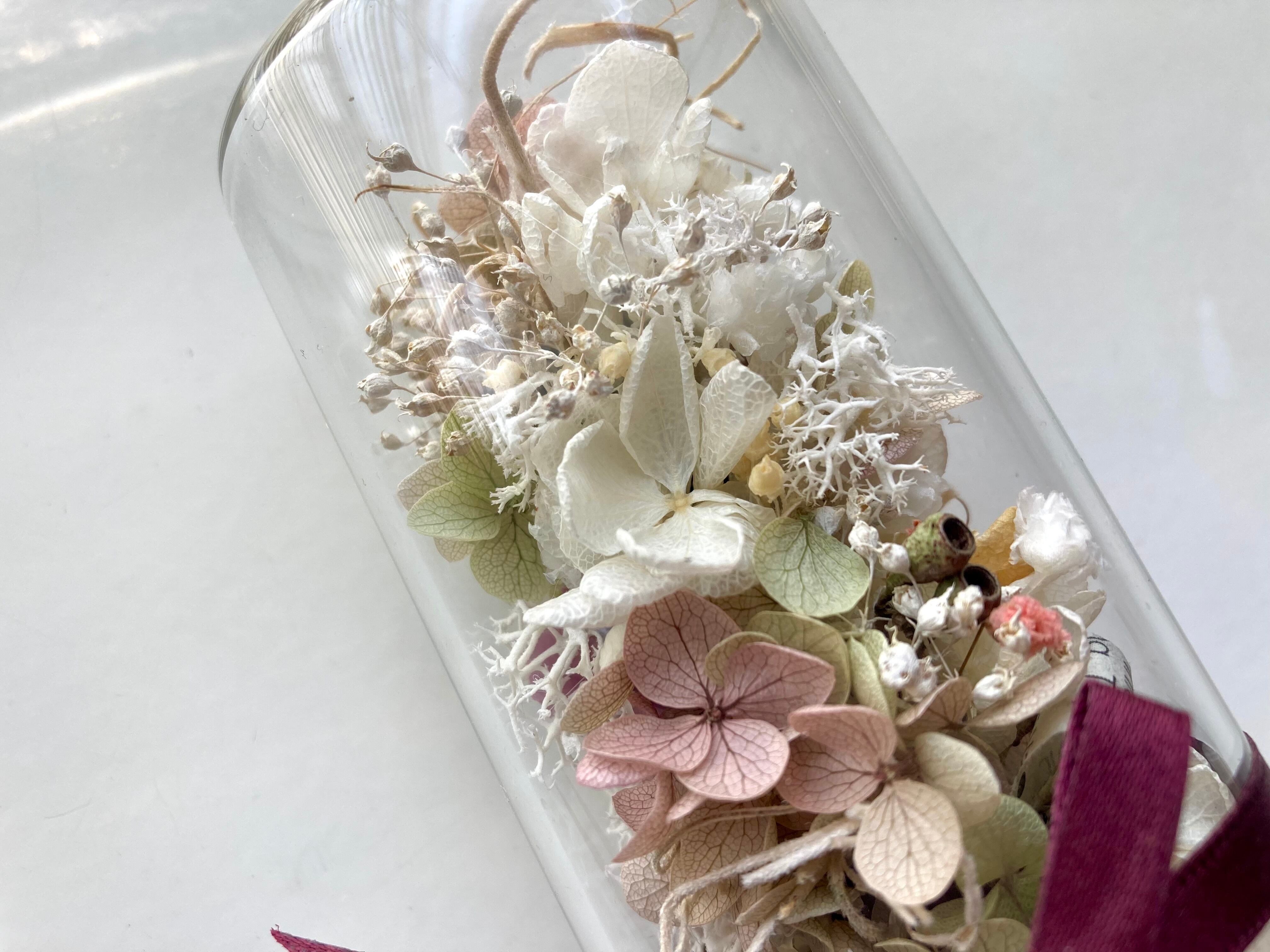 bottle flower(ボトルフラワー)/ガラスのアレンジメント/white×gray×lilac✴︎プリザーブドフラワー✴︎