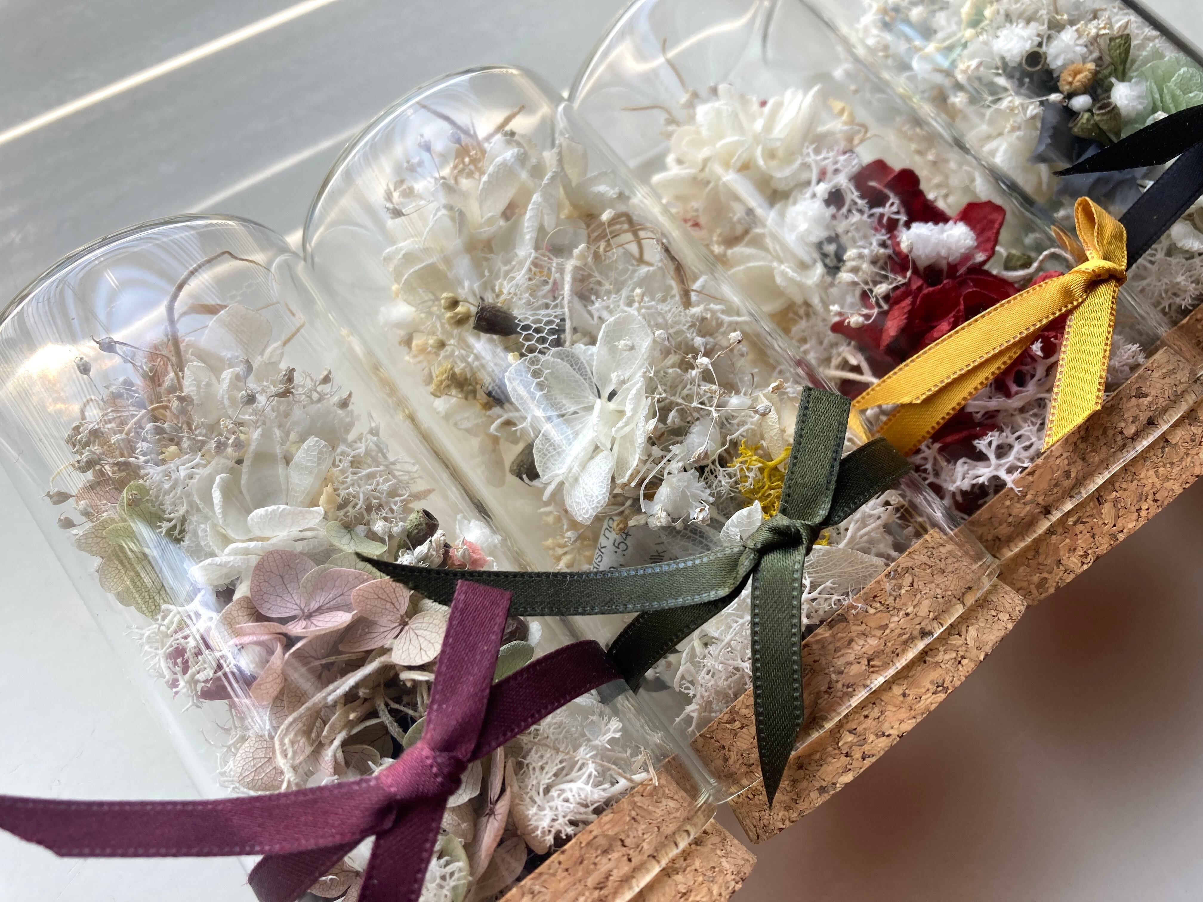 プリザーブドフラワーとドライフラワーを使ったオリジナルのアレンジメントです。