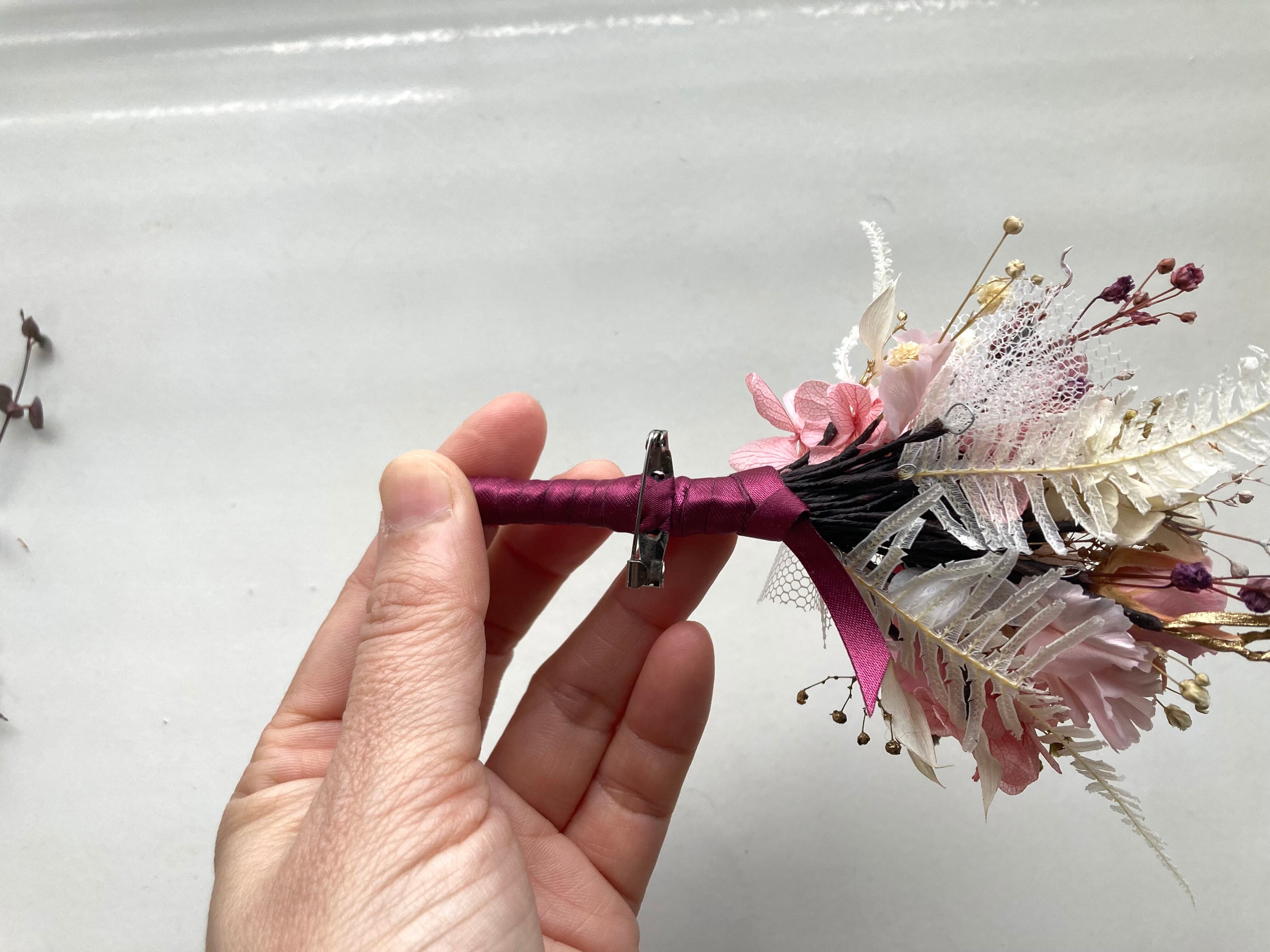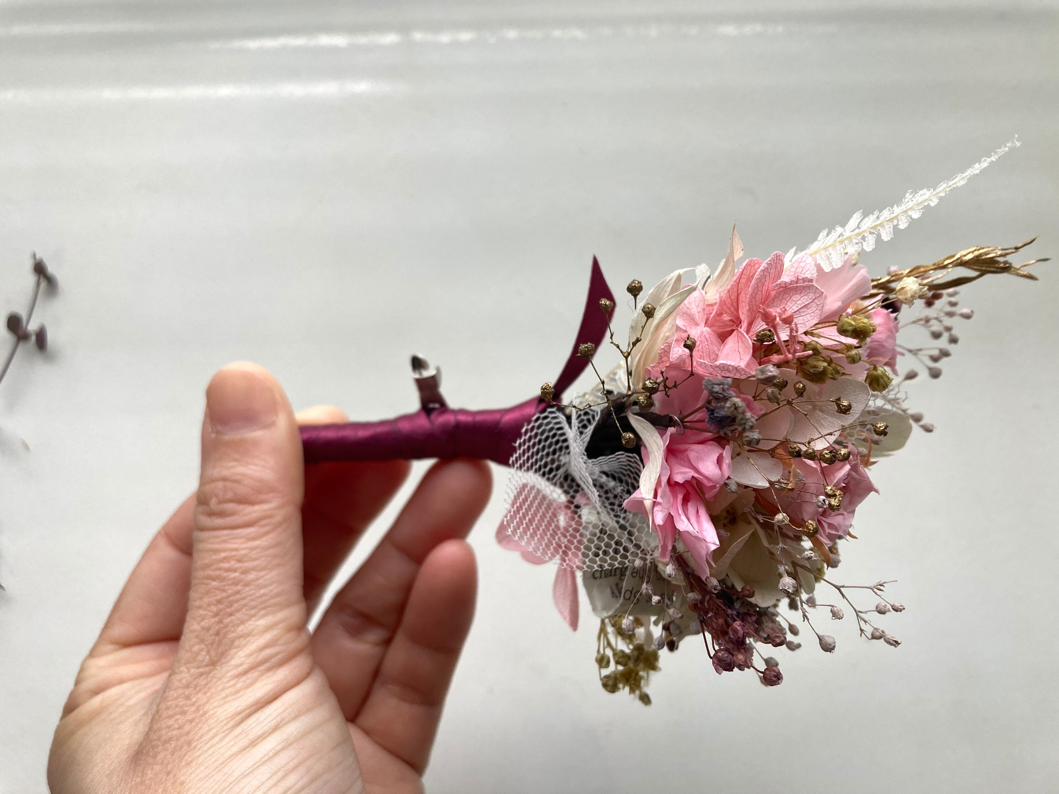 プリザーブドフラワーやドライフラワーを使ったオリジナルハンドメイドのコサージュです。